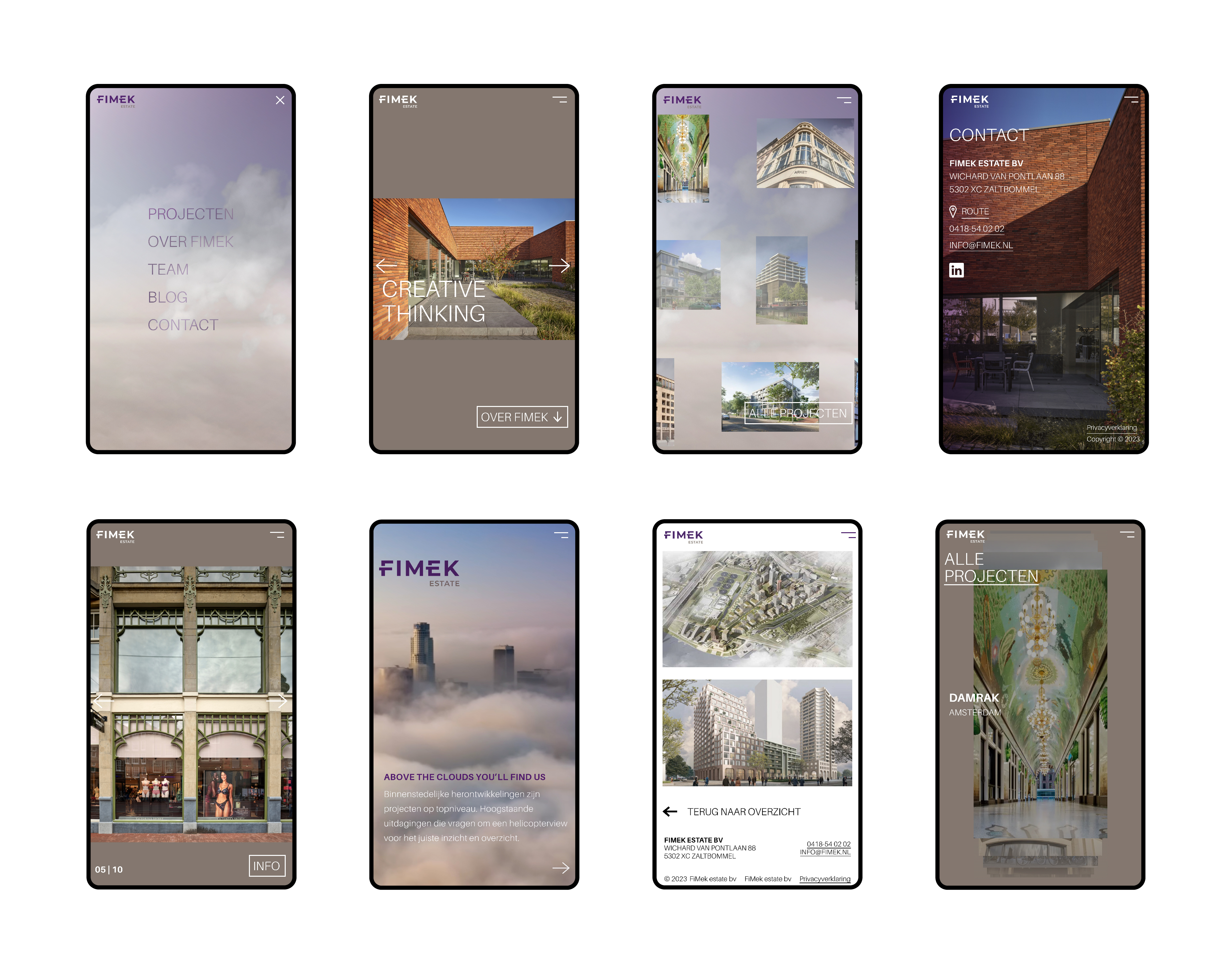 De uitstraling van je bedrijf komt tot leven op je website. State-of-the-art. High-end. De belofte ‘Above the clouds you’ll find us’ onderstreept het topniveau van FiMek estate. Hun uitdagingen vragen om een helicopterview voor het juiste inzicht en overzicht. En dat inspireerde ons ook voor de beurspresentatie op de Provada. Met als eyecatcher een interactieve presentatie van projecten waarbij je van grote hoogte af kon dalen en inzoomen op jouw project. Zowel klanten als partners waarderen de gecreëerde uitstraling.