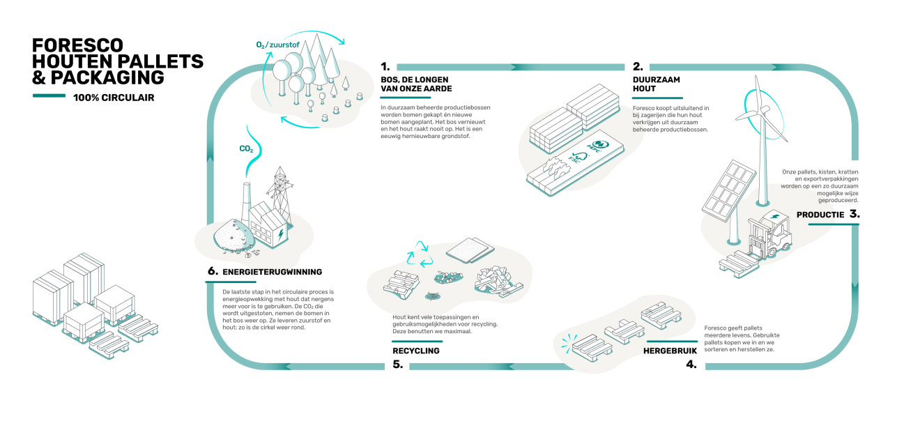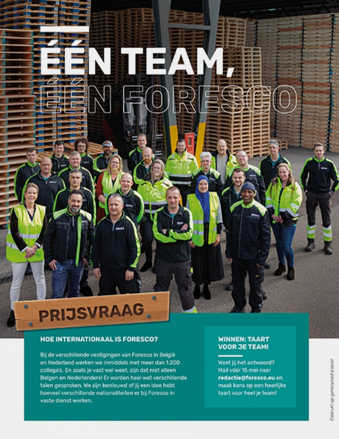 Foresco is een snelgroeiende onderneming in pallets en packaging. Mede door overnames is het bedrijf uitgegroeid tot marktleider van de Benelux. Inmiddels werken er meer dan 1.700 medewerkers in ruim 40 vestigingen in Nederland, België en Duitsland. Bij alles wat Foresco doet, staan duurzaamheid en medewerkers voorop. En dat zie je terug in wat wij voor ze maken.In samenwerking met Nico de Bruin.