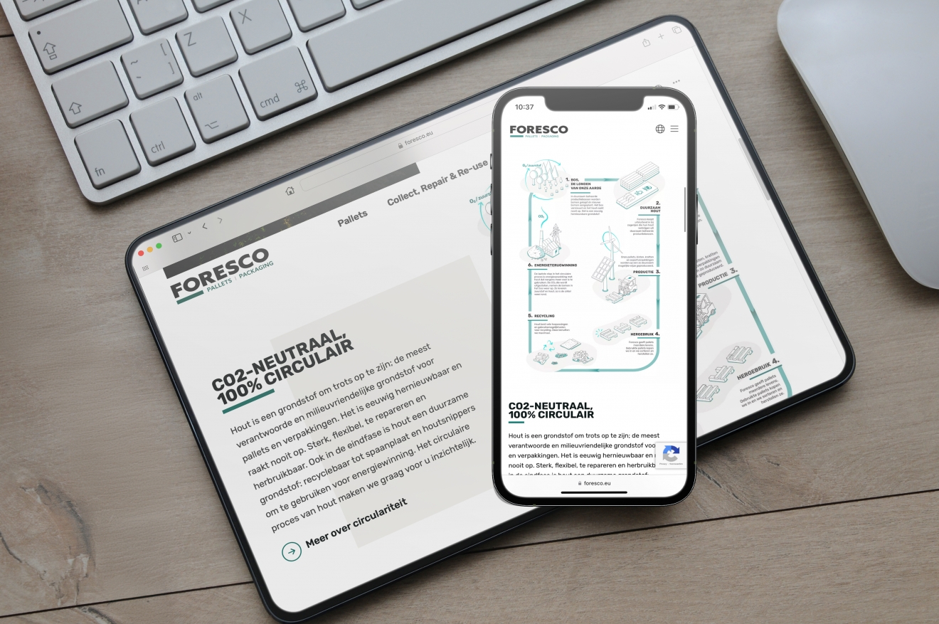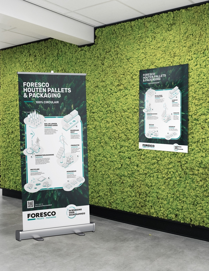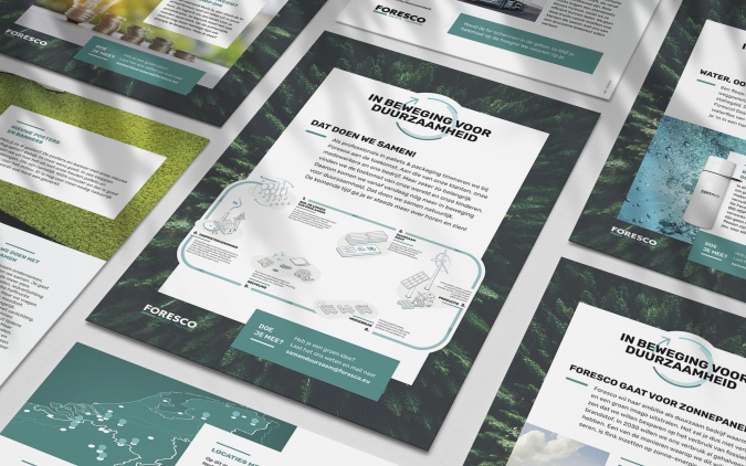Toen wij voor Foresco startten, was de website al in ontwikkeling. Aan ons werd gevraagd om een passende infographic te maken die het duurzaamheidsverhaal van Foresco vertelt. Die leverden we op in een geheel eigen stijl en in verschillende formaten.