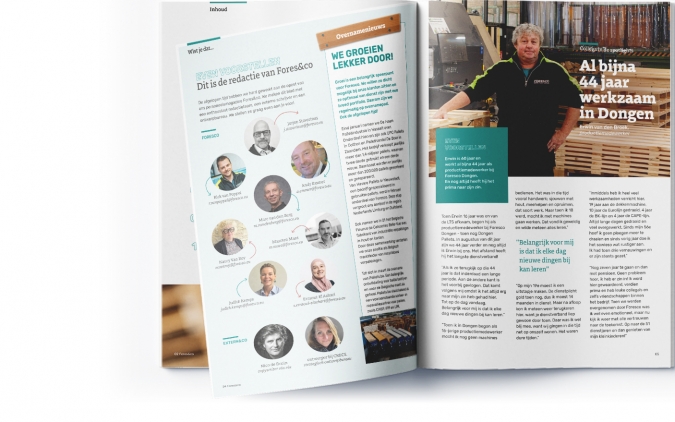Door de overnames en de vele vestigingen van Foresco in diverse landen, is het een uitdaging om medewerkers te verbinden. Hiervoor ontwikkelden wij een personeelsmagazine, waarvoor we ook de naam bedachten. Elk kwartaal doen we interviews, voeren we redactie en geven we vorm.